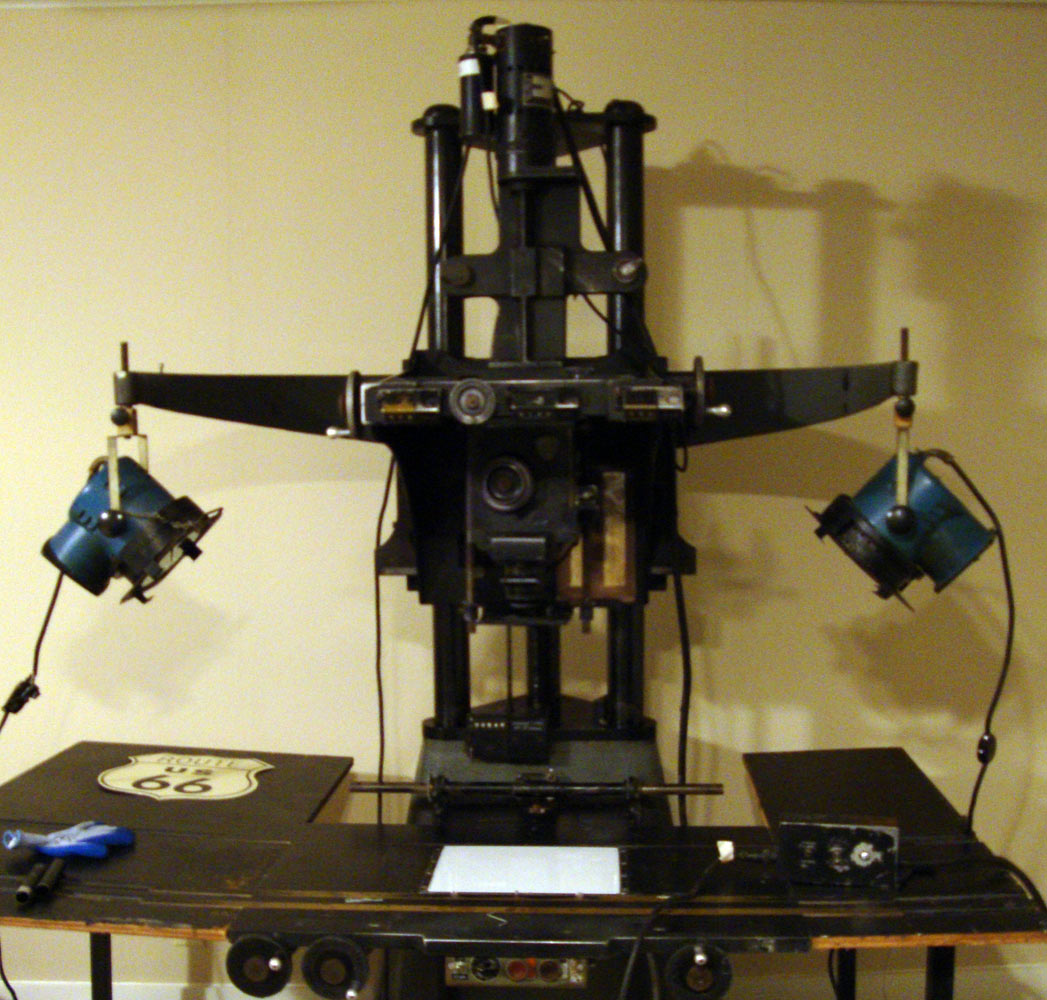 august 31 arizona. i drove through LA on my way out of california to buy a second giant animation stand and i hope it will be happy living with me in austin. i'm still not sure what to do with the one in the santa barbara studio, or how to get it down that flight of stairs. this camera seems a bit different than the other, almost turned upside down... the camera is mobile up top, whereas on the old stand it's the table that moves.
